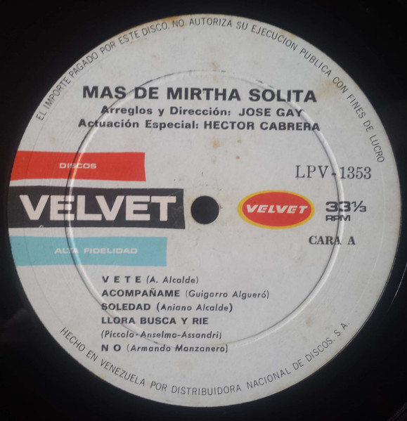 Mirtha Perez – Mas de Mirtha Solita! (LP, Album)