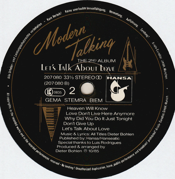 Modern Talking – Let’s Talk About Love (The 2nd Album) (LP, Album, Sti)