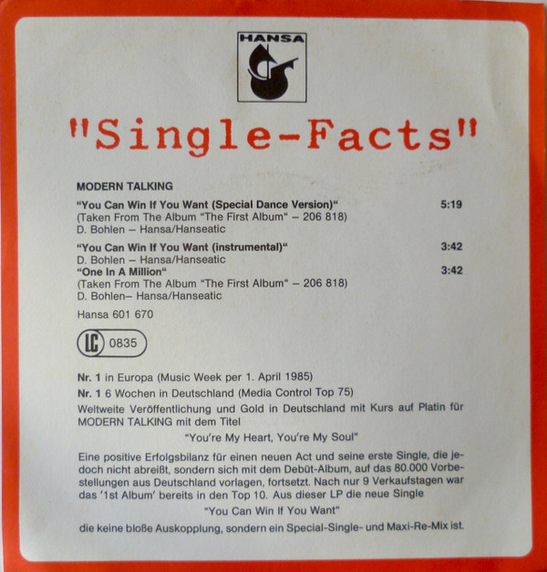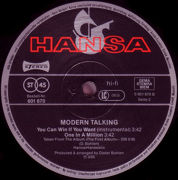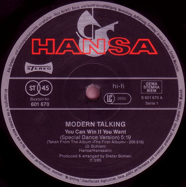 Modern Talking – You Can Win If You Want (Special Dance Version) (12″, Maxi)