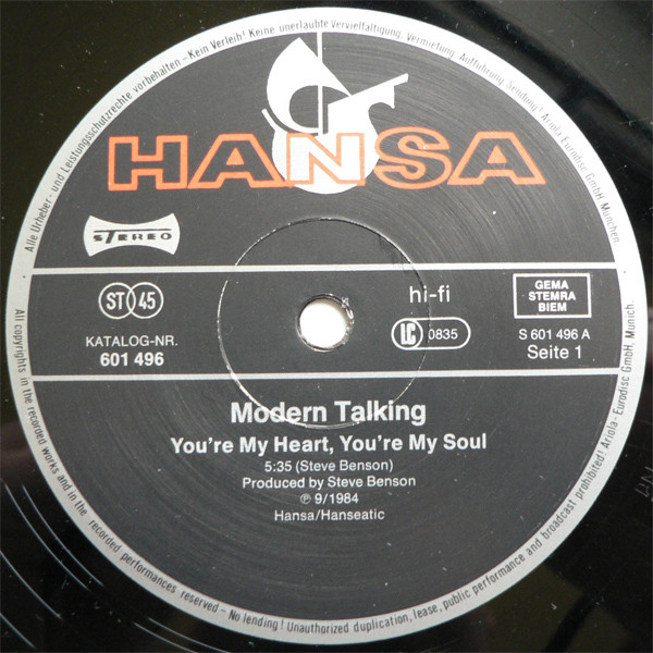 Modern Talking – You’re My Heart, You’re My Soul (12″, Maxi)