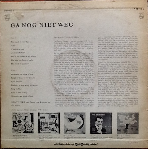 Monty Ford Met Orkest o.l.v. Gerard van Krevelen – Ga Nog Niet Weg (LP, Comp)