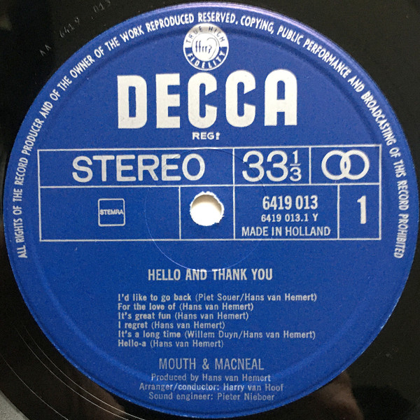 Mouth & MacNeal – Hello And Thank You (LP, Album)