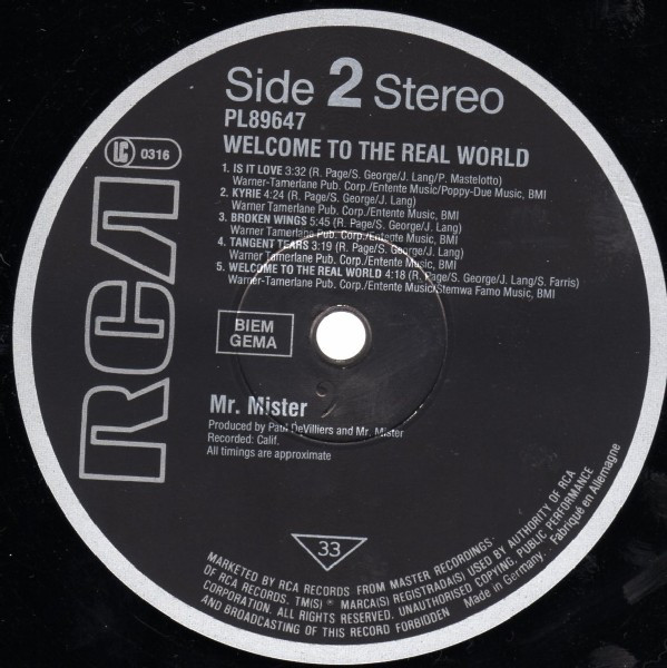 Mr. Mister – Welcome To The Real World (LP, Album)