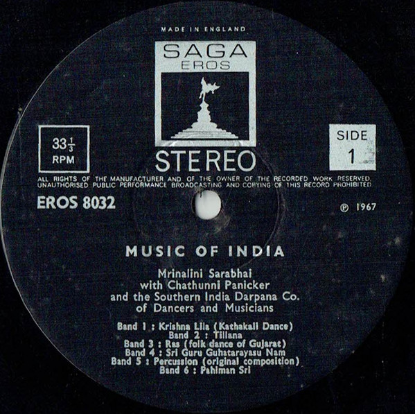 Mrinalini Sarabhai With Chathunni Panicker And The Southern India Darpana Company Of Dancers And Musicians – Music of India (LP)
