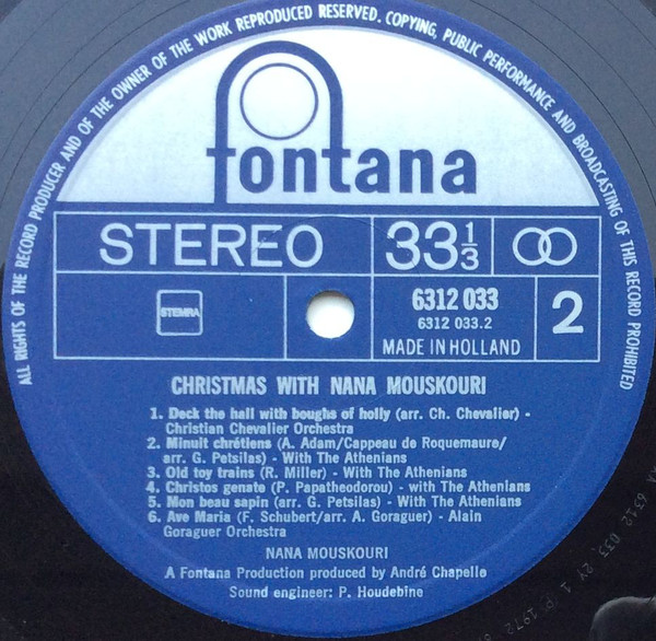 B1. Nana Mouskouri, Christian Chevallier Et Son Orchestre – Deck The Hall With Boughs Of Holly 1:30