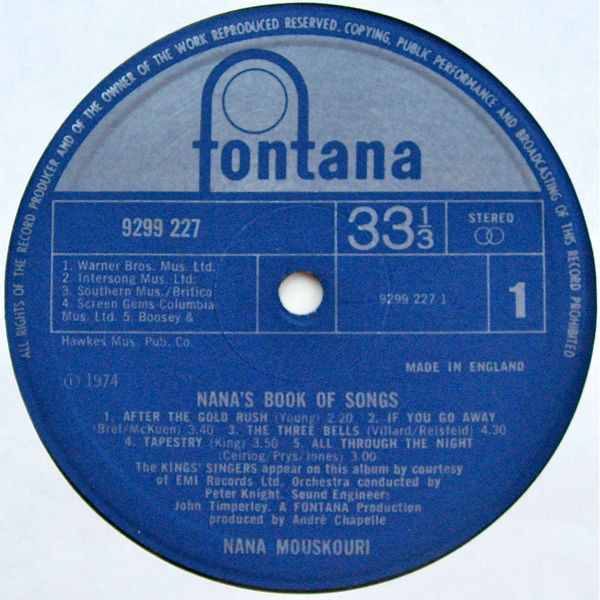 Nana Mouskouri – Nana’s Book Of Songs (LP, Album)