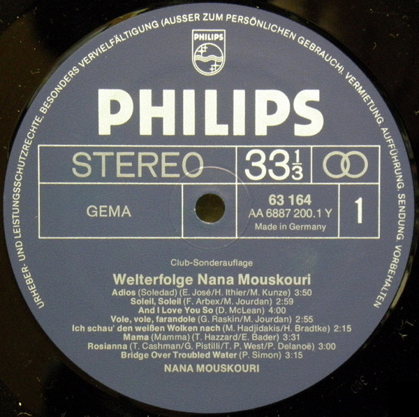 Nana Mouskouri – Welterfolge (LP, Comp, Club)
