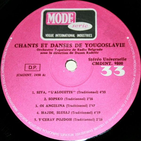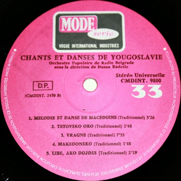 Narodni Orkestar RTB – Chants Et Danses De Yougoslavie (LP, Album)