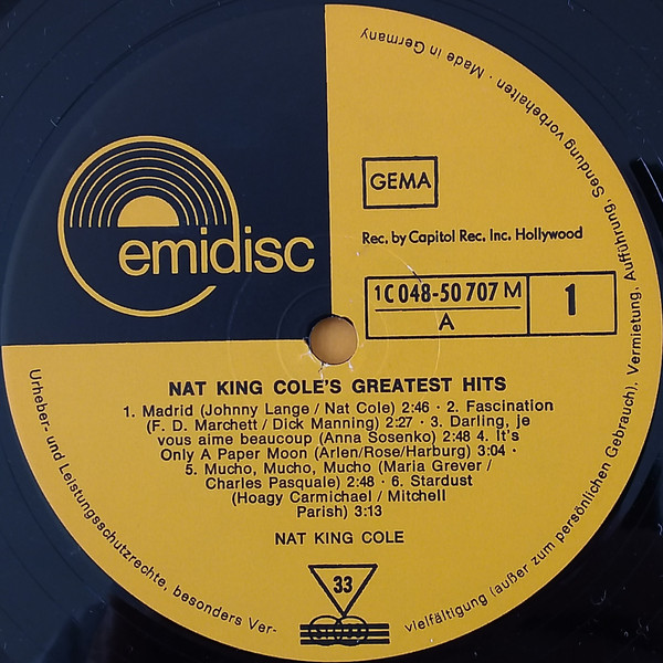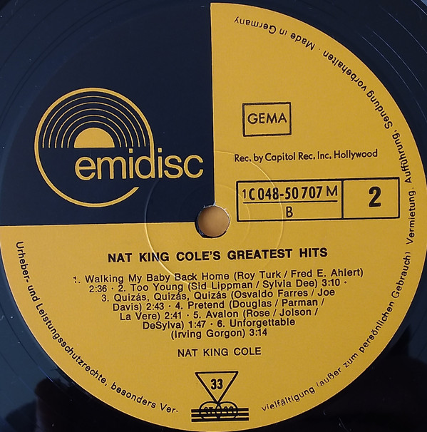 Nat King Cole – Nat King Cole’s Greatest Hits (LP, Comp)