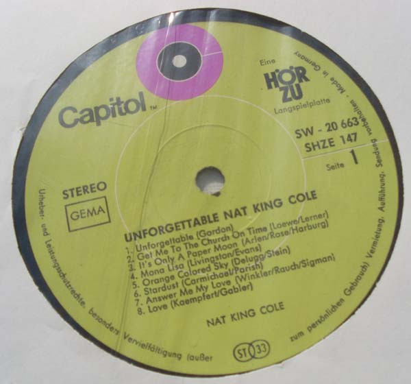 Nat King Cole – The Unforgettable Nat King Cole (LP, Comp, RE)
