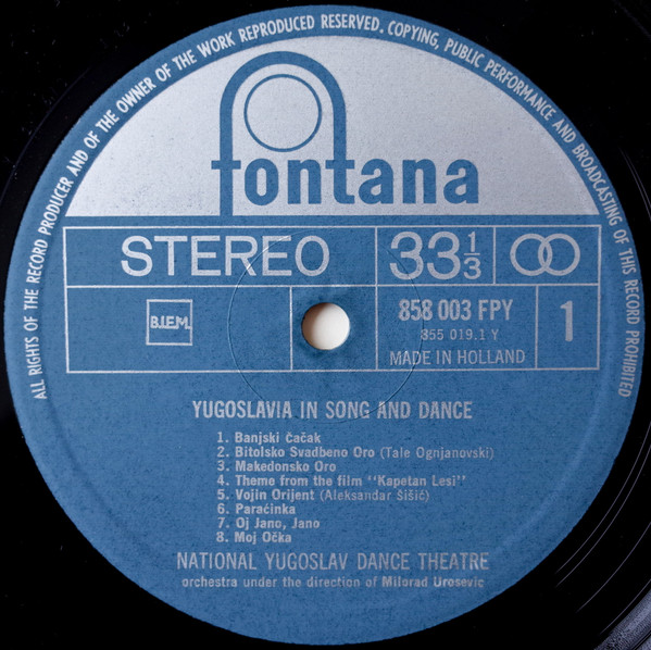 National Yugoslav Dance Theatre Under The Direction Of Mile Urošević – Yugoslavia In Song And Dance (LP, Album)