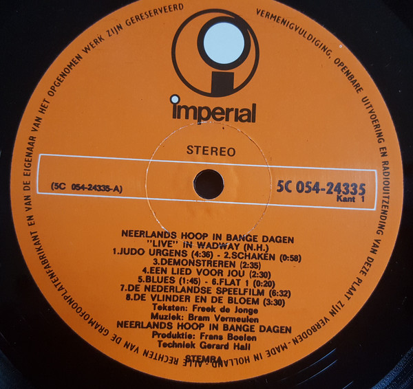 Neerlands Hoop In Bange Dagen – ‘Live’ In Wadway (N.H.) (LP, RE)