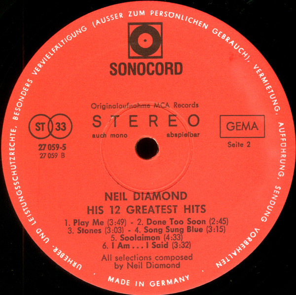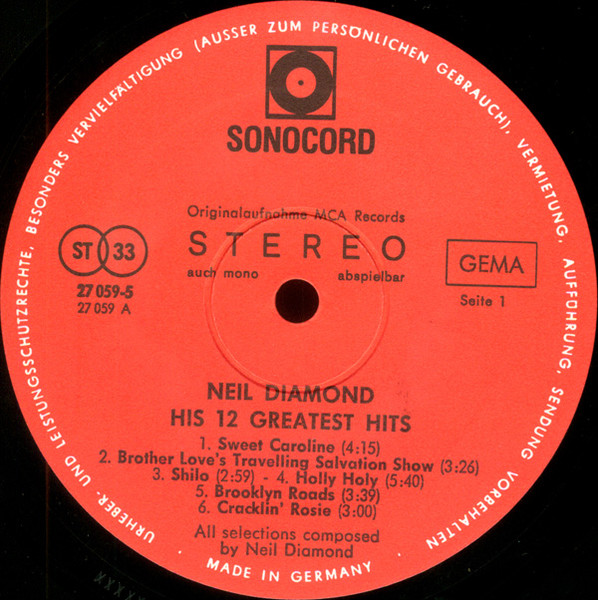 Neil Diamond – His Greatest Hits (LP, Comp, Club)