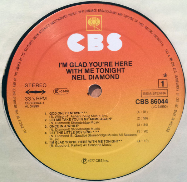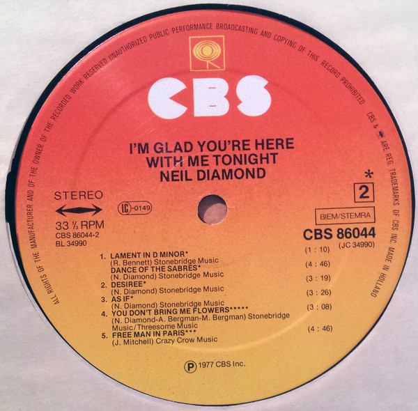 Neil Diamond – I’m Glad You’re Here With Me Tonight (LP, Album)