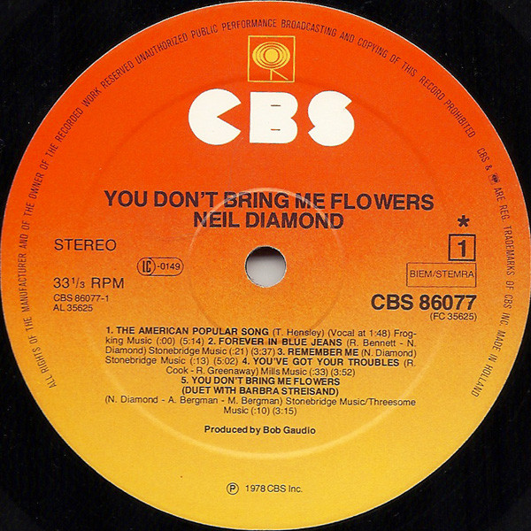 Neil Diamond – You Don’t Bring Me Flowers (LP, Album)