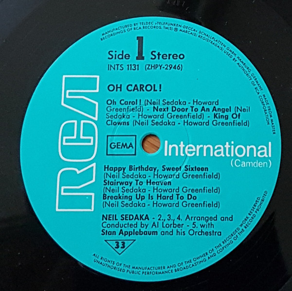 Neil Sedaka – Yesterday’s Pop Scene – “Oh, Carol!” (LP, Comp)