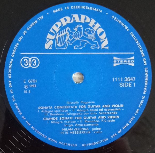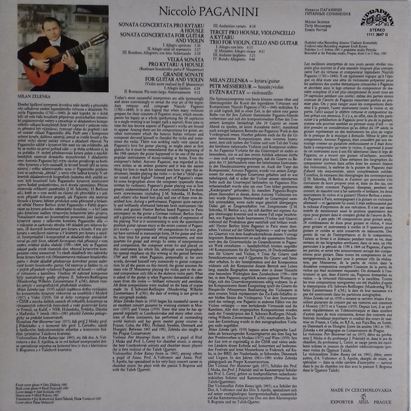 Niccolò Paganini, Milan Zelenka, Petr Messiereur, Evžen Rattay – Works With Guitar (LP, Album)