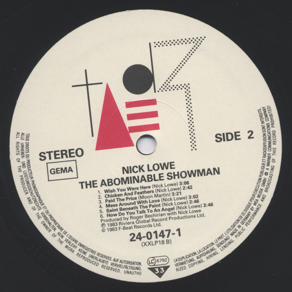 Nick Lowe – The Abominable Showman (LP, Album, GEM)
