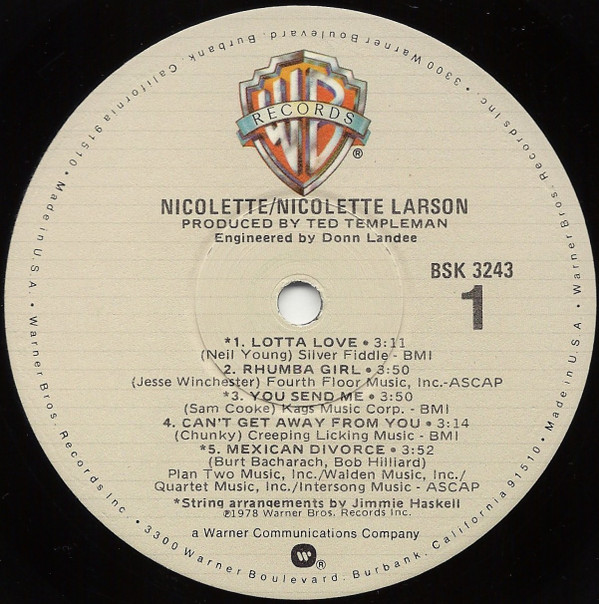 Nicolette Larson – Nicolette (LP, Album, Win)