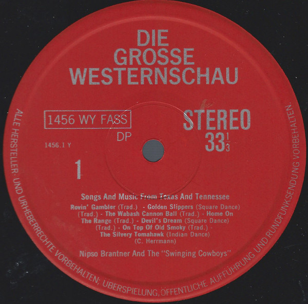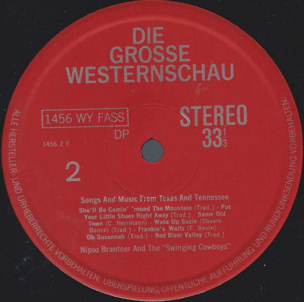 Nipso Brantner And The “Swinging Cowboys” – Die Grosse Westernschau (Songs And Music From Texas And Tennessee) (LP, Album, Red)