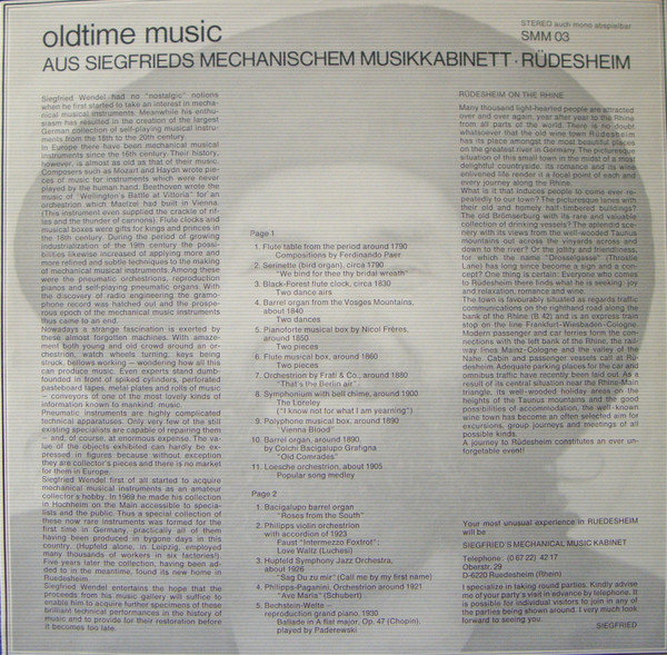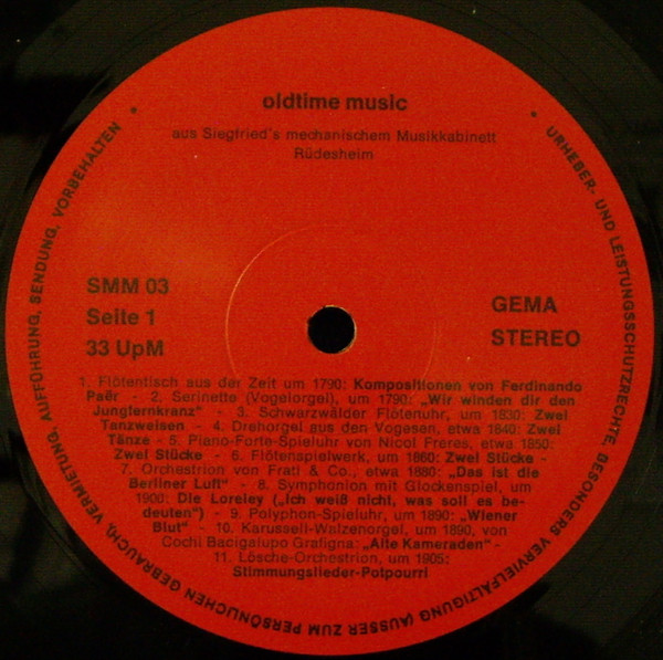No Artist – Oldtime Music Aus Siegfrieds Mechanischem Musikkabinett • Rüdesheim (LP, Album)