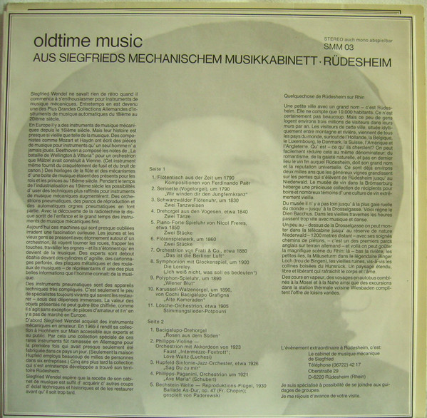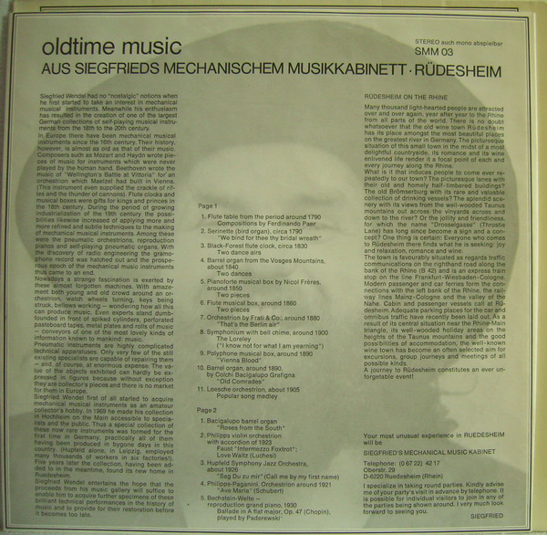 No Artist – Oldtime Music Aus Siegfried’s Mechanischem Musiksalon Rüdesheim (LP)