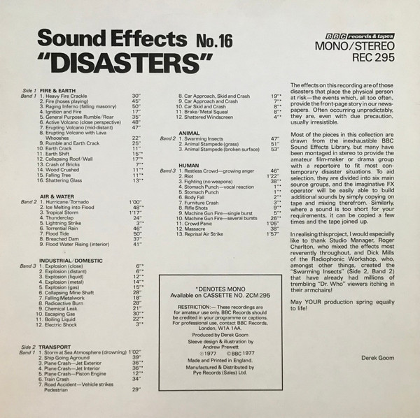No Artist – Sound Effects No. 16 – Disasters (LP, Mono)