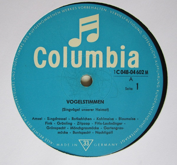 No Artist – Vogelstimmen (Singvögel Unserer Heimat) (LP, Mono)