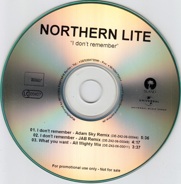 Northern Lite – I Don’t Remember (CDr, Single, Promo)