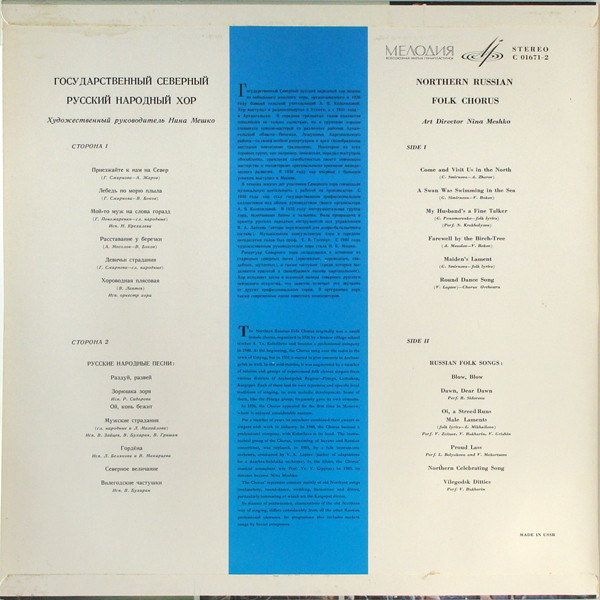 Northern Russian Folk Chorus*, Nina Meshko* – Northern Russian Folk Chorus (LP, Album, RE)