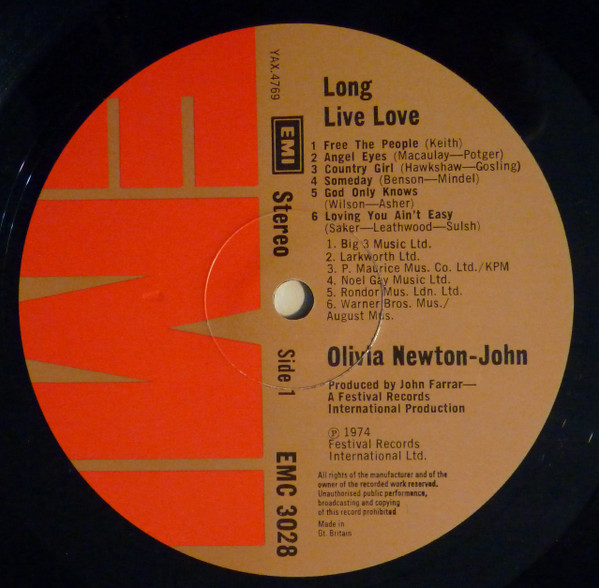 Olivia Newton-John – Long Live Love (LP, Album, RE)