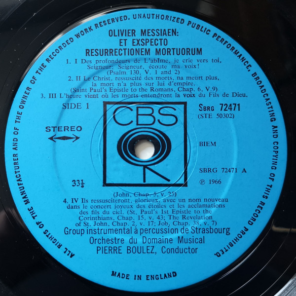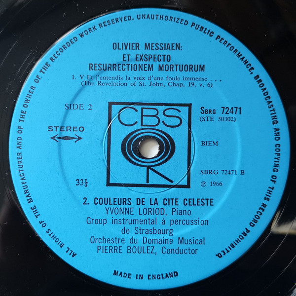 Olivier Messiaen / Pierre Boulez – Et Exspecto Resurrectionem Mortuorum / Couleurs De La Cité Céleste (LP)