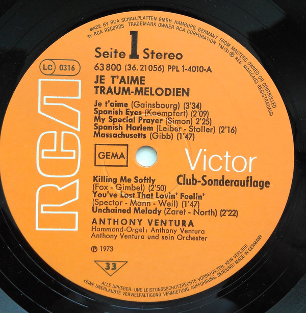 Orchester Anthony Ventura – Je T’aime (Traum-Melodien) (LP, Club, S/Edition)