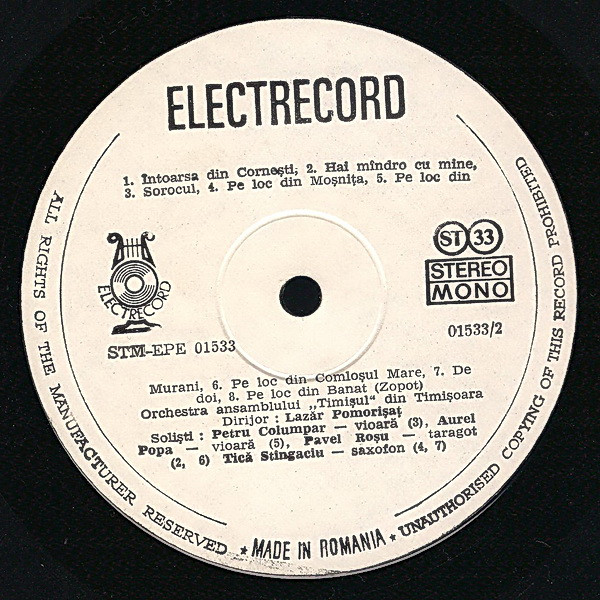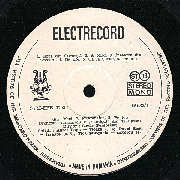 Orchestra ansamblului „Timișul” din Timișoara – Ensemble Folklorique Timișul (LP, Album)