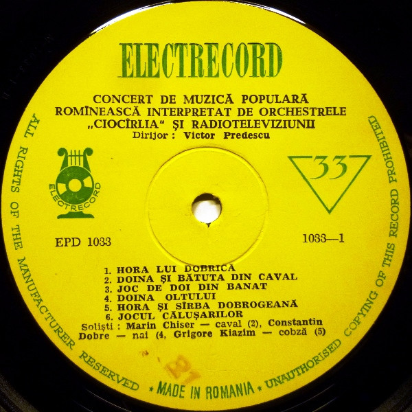 Orchestra Ciocîrlia Și Orchestra De Muzică Populară A Radioteleviziunii • Dirijor: Victor Predescu – Muzică Populară Românească (10″, Album, Mono)