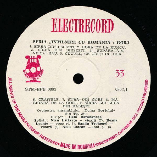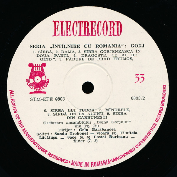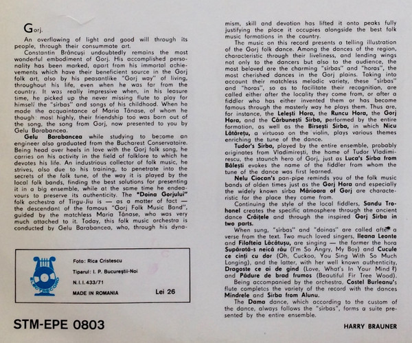 Orchestra „Doina Gorjului” Dirijor: Gelu Barabancea – Gorj (LP, Album)