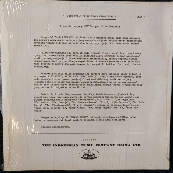 Orkes Krontjong “Mustika”* – Mawar Merah Dalam Irama Krontjong (LP)