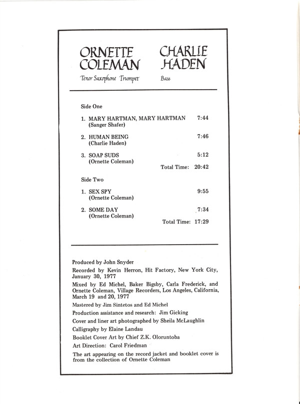 Ornette Coleman And Charlie Haden – Soapsuds, Soapsuds (LP, Album, Gat)