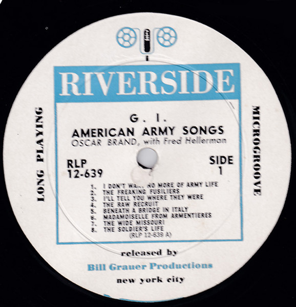 Oscar Brand With Fred Hellerman – G.I. American Army Songs (LP, Album, Mono)