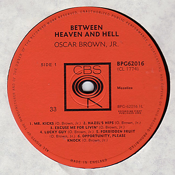 Oscar Brown Jr. – Between Heaven And Hell (LP, Album, Mono)