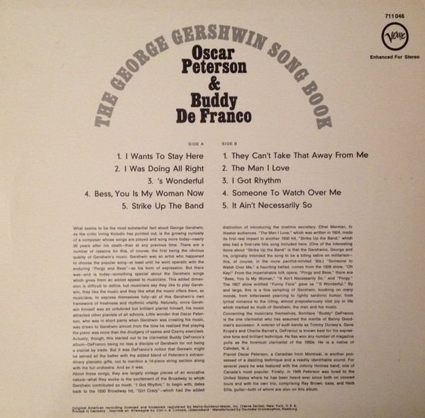 Oscar Peterson & Buddy De Franco* – The George Gershwin Song Book (LP, Album)