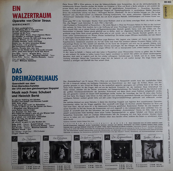 Oscar Straus, Franz Schubert, Heinrich Berté ; Erika Köth, Brigitte Mira, Melitta Muszely, Lisa Otto, Bruno Fritz, Erich Kunz, Manfred Schmidt, Rudolf Schock – Ein Walzertraum (Querschnitt) – Das Dreimäderlhaus (Querschnitt) (LP, Album)
