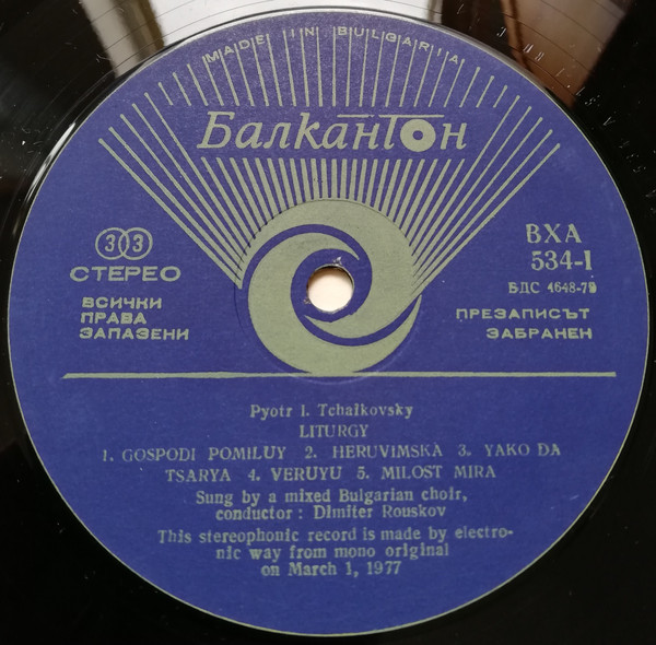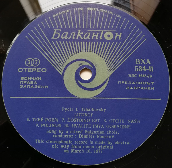 P. I. Tchaikovsky* Sung By A Mixed Bulgarian Choir* – Liturgy (LP)