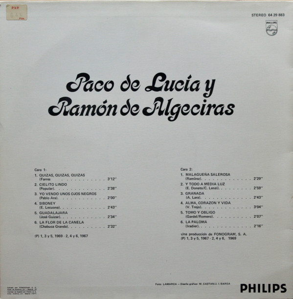 Paco De Lucía Y Ramón De Algeciras – Hispanoamérica Con Paco De Lucía Y Ramón De Algeciras (LP, Comp)