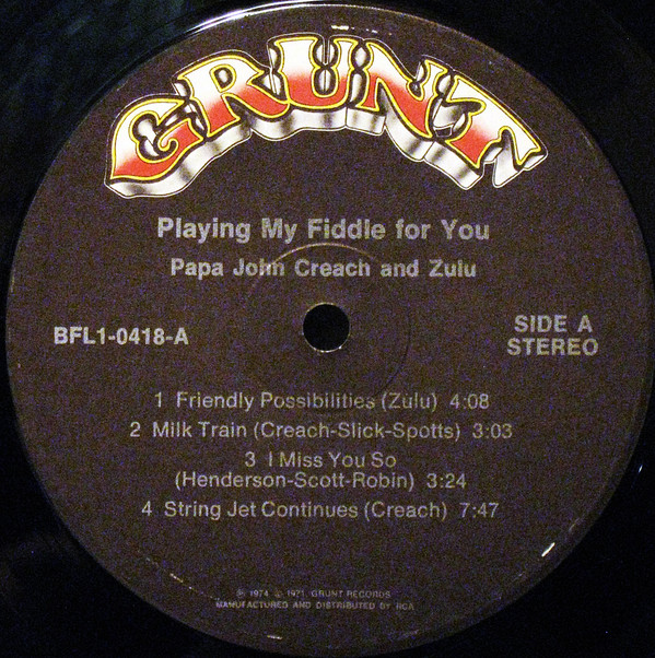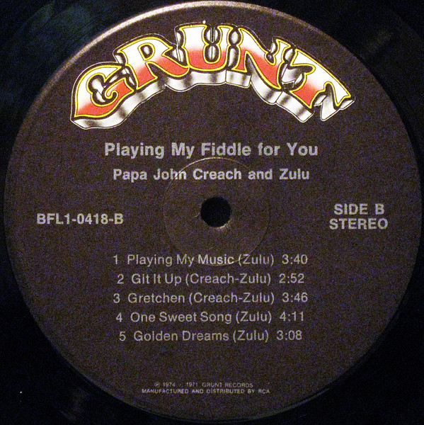 Papa John Creach & Zulu (9) – Playing My Fiddle For You (LP, Album, Ind)