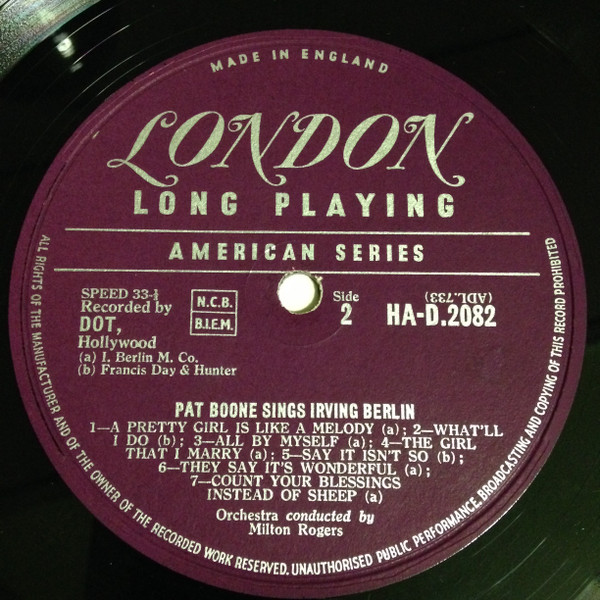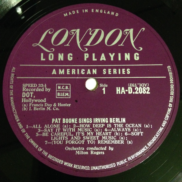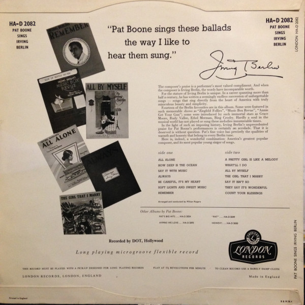 Pat Boone – Pat Boone Sings Irving Berlin (LP, Album, Mono)