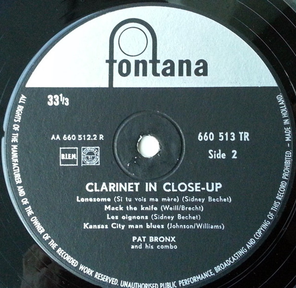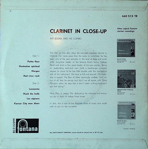 Pat Bronx And His Combo – Clarinet In Close-Up (10″)