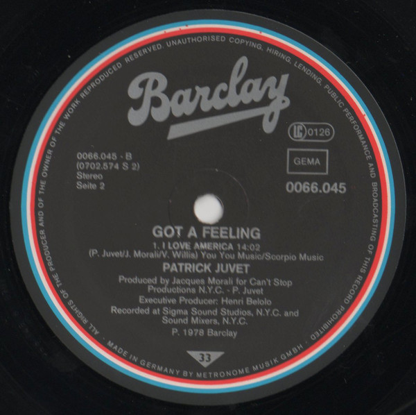 Patrick Juvet – Got A Feeling – I Love America (LP, Album)