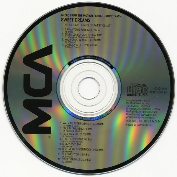 Patsy Cline – Sweet Dreams – The Life And Times Of Patsy Cline (Original Motion Picture Soundtrack) (CD, Album, RP)