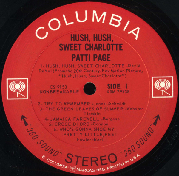 Patti Page – Hush, Hush, Sweet Charlotte (LP, Album, Pit)